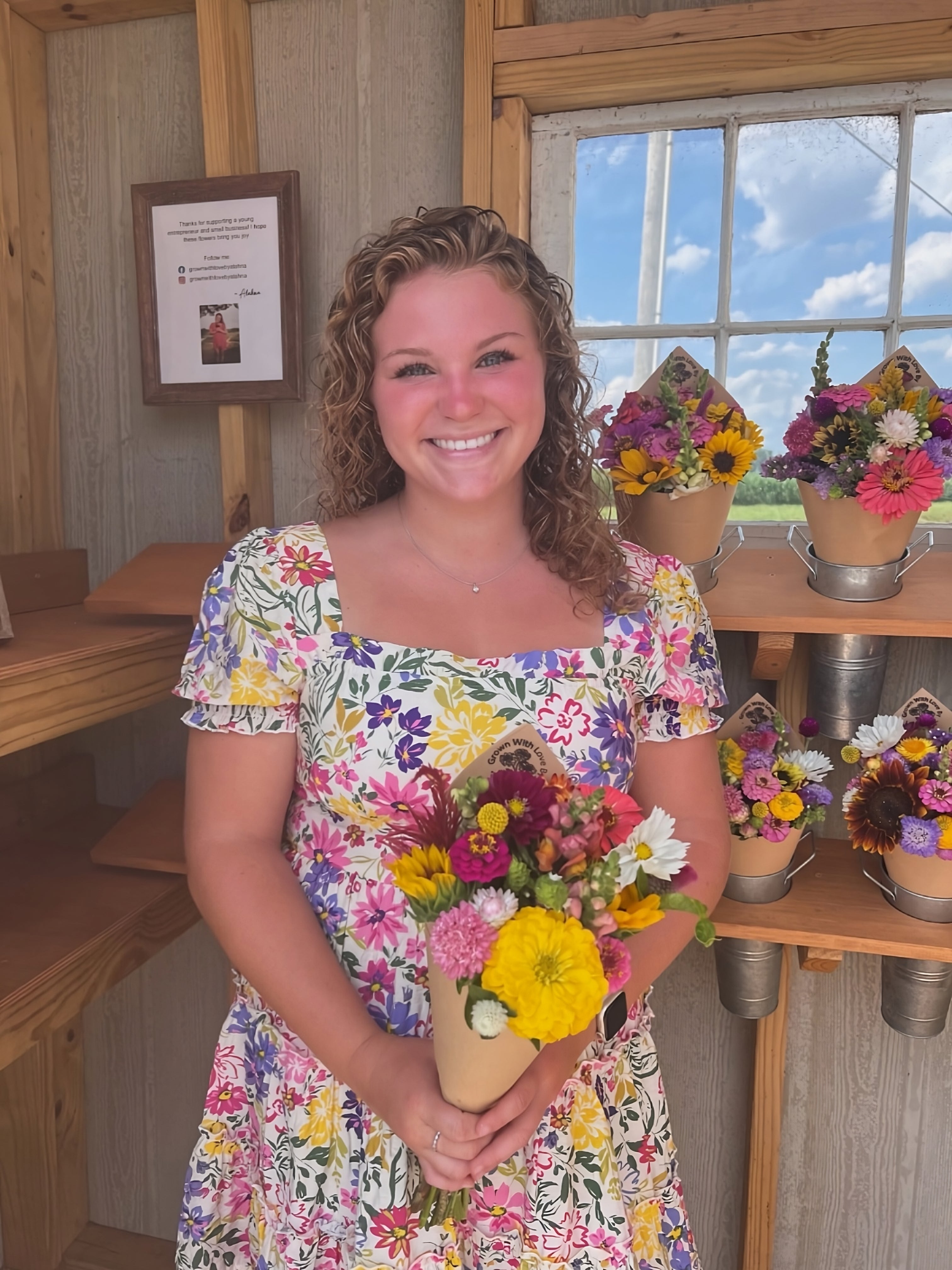 Hi, I'm Alahna, a cut flower farmer and florist in Gettysburg, PA. I grow flowers from seed on my family farm and turn them into gorgeous bouquets to brighten your kitchen table, cheer up your best friend, and add beauty to your prom, wedding, or other special event.